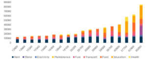 Although tenants now spend more across each of the 9 categories, the proportion of expenditure that was designated to each of the categories (Rent, Water, Electricity, Maintenance, Fuel, Transport, Food, Education, and Health) differed only slightly when moving into the Fusion properties, with small increases to the proportion of total expenditure more being spent on Rent, Maintenance, Fuel and Education.