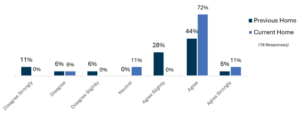 The survey revealed positive increases in housing satisfaction across several critical factors, showing that tenants in the Fusion property are experiencing notable improvements in key areas of their living conditions compared to their previous homes. Questions on satisfaction were ranked on a 7-point scale from “disagree strongly” to “agree strongly,” with the following figures reflecting those who responded with “agree” or “agree strongly” to each factor.